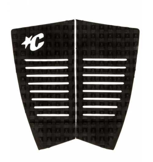 The Retro 2-piece traction pad is designed specifically for Fish or alternative shaped boards with wide tail shapes. Revised throwback 80s inspired outline shape and tonal design. Also featuring the Square-Loc II traction pattern, 14mm Wedge Kick, 3M Adhesive backing and the exclusive lightweight premium EVA formula.
